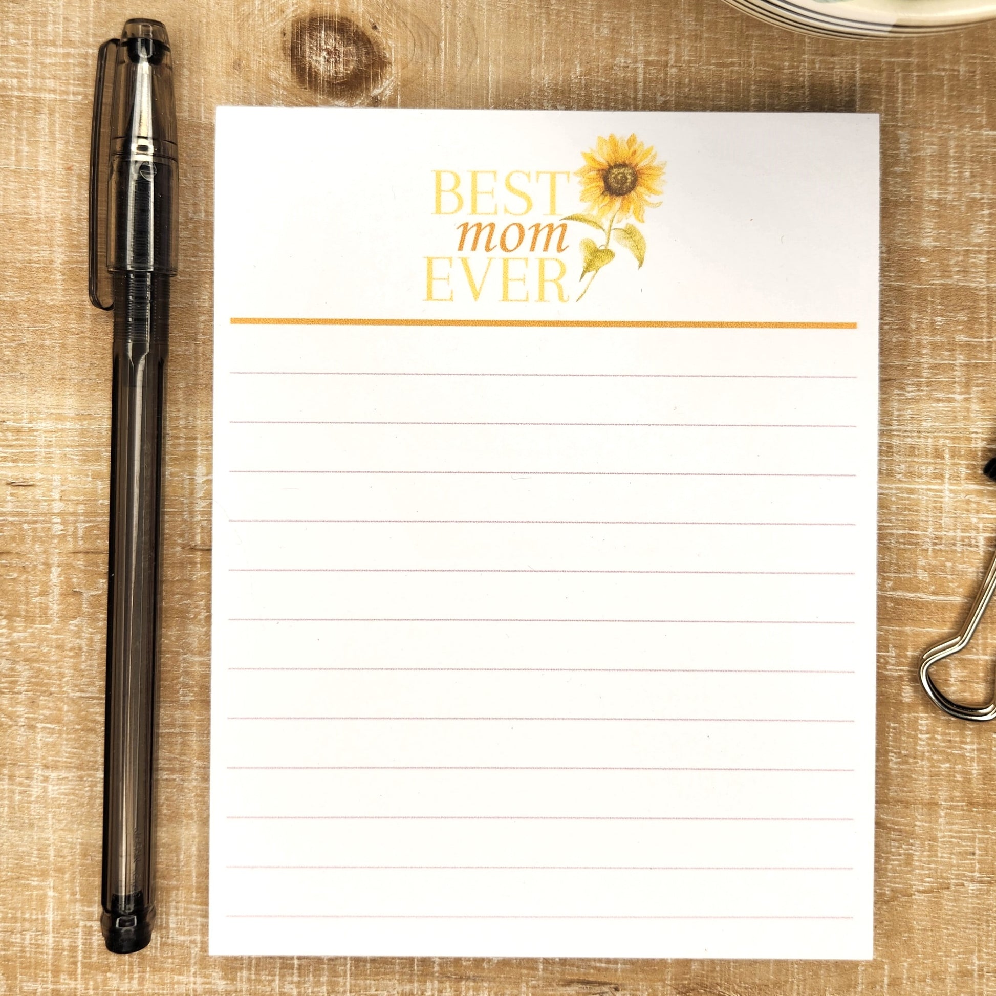 Celebrate your mom with 'Best Mom Ever' notepads! This special Mother's Day edition is both ecofriendly and adorned with beautiful sunflowers, creating a meaningful memento for years to come. Warm and sincere, these notepads are perfect for writing down special thoughts, memories and moments.