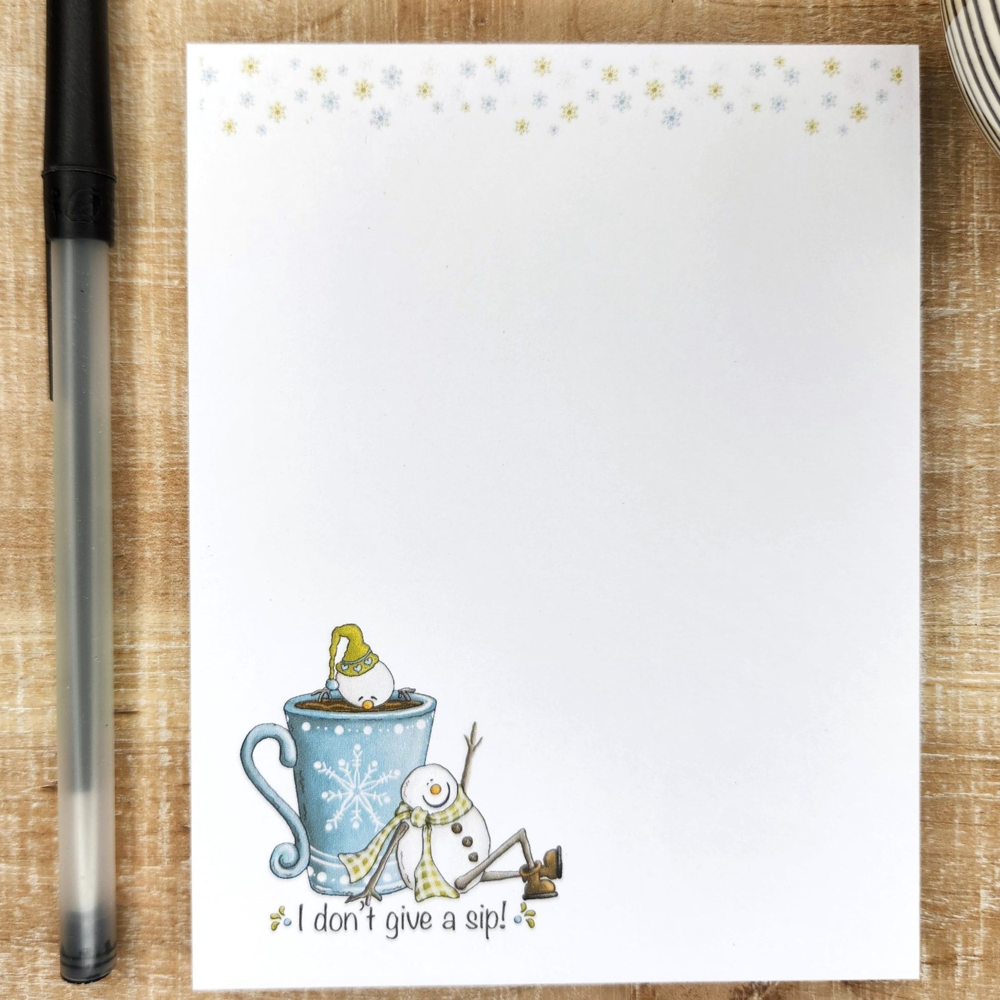 Say goodbye to winter blues with the I Don't Give A Sip! Notepad. Enjoy adorable snowmen cozying up over hot cocoa while you jot down notes on eco-friendly sugarcane paper. Get inspired to take on the season with this whimsical and sustainable stationery!